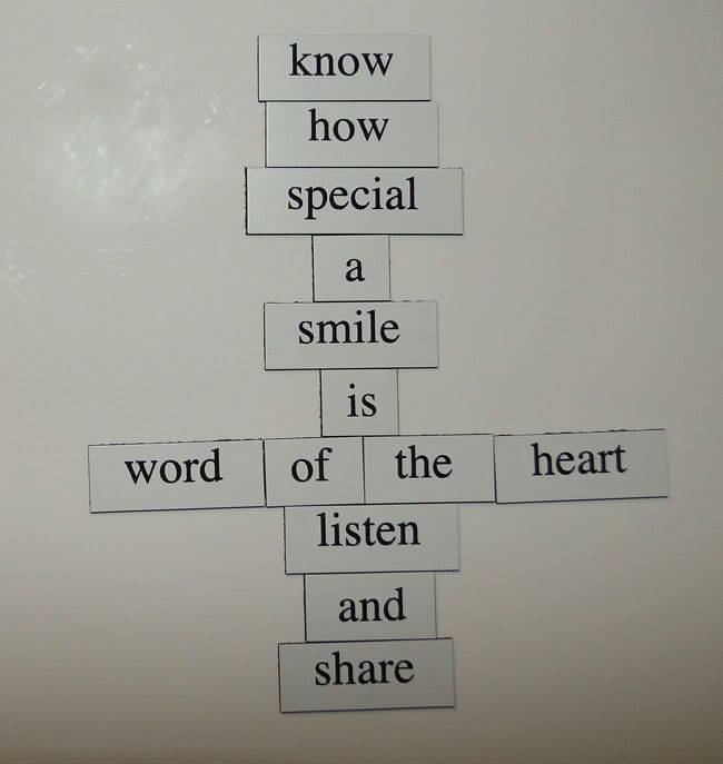 | Word magnets allowed visitors to create their own visual poetry. |